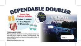 The Dependable Doubler is a pre-paid discounted ticket redeemable on your next visit for: